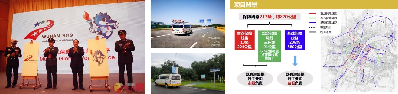 第七屆世界軍人運動會于2019年在武漢舉行,城建委負責武漢軍運會保障線路路面整治相關(guān)導(dǎo)則和方案編制工作。路源檢測公司承擔10條重點保障線路、三環(huán)線綜合保障線路、基礎(chǔ)保障線路路面檢測及附屬設(shè)施調(diào)查服務(wù),合計單車道里程超過2000公里。