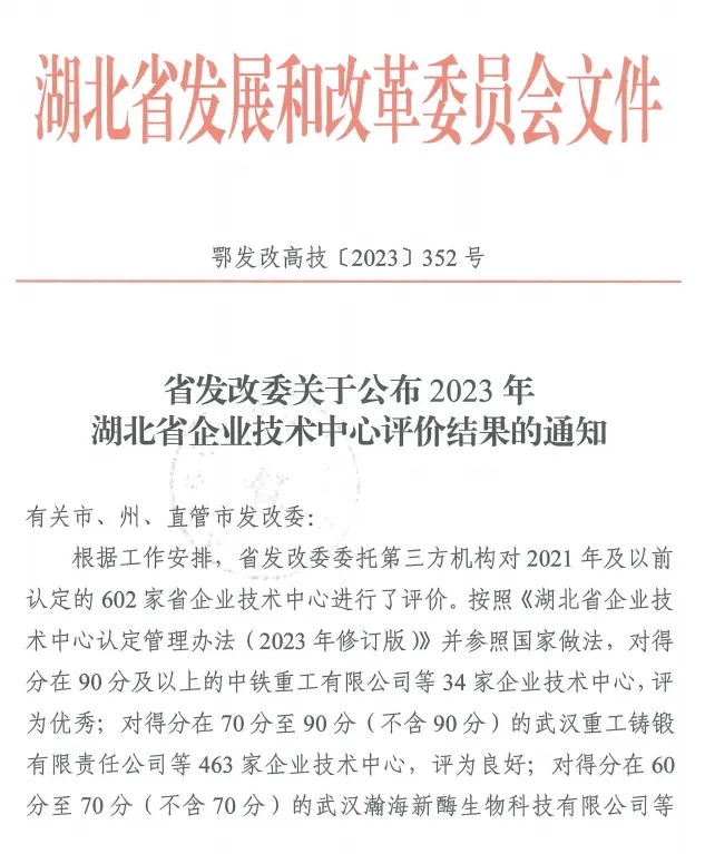 完成湖北省發(fā)改委組織的省企業(yè)技術(shù)中心三年評(píng)價(jià)并獲評(píng)“良好”