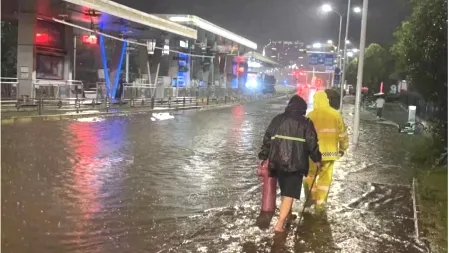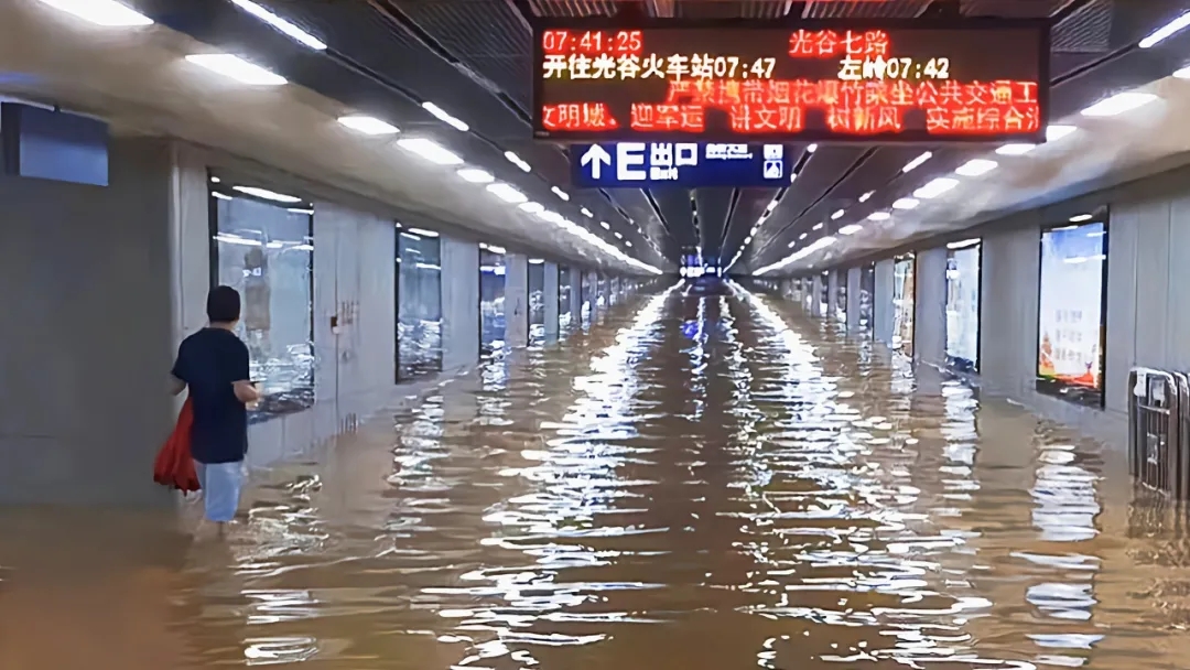 時(shí)間回到2019621日,武漢經(jīng)歷了當(dāng)年24小時(shí)最大累計(jì)降雨量174.7毫米的暴雨,高新大道與光谷七路路口出現(xiàn)了嚴(yán)重漬水,路面最大漬水深度達(dá)到50cm,且有部分雨水通過有軌電車與地鐵換乘通道進(jìn)入地鐵站點(diǎn),嚴(yán)重影響周邊交通出行。