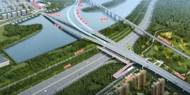 ? ? 根據(jù)項目邊界條件,橋梁工程采用差異化設計方案,針對不同路段特點進行精細化設計:跨黃潭湖深水區(qū)域段上部結構采用預制鋼混組合梁,下部結構采用高樁承臺配合吊箱圍堰施工,顯著提升施工效率;跨三環(huán)線采用86.6米大跨徑簡支鋼箱梁,跨徑位居國內同類橋梁前列,并配套采用鋼-UHPC輕型組合橋面體系,有效提升結構耐久性;陸地段選用預應力混凝土結構,大幅降低建設成本。