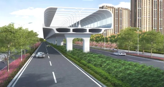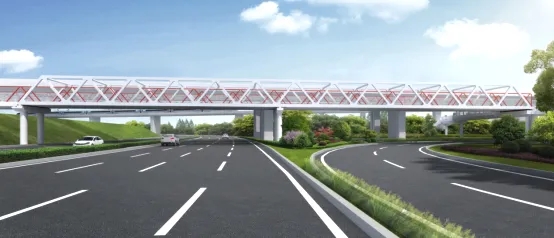 ? ? 跨三環(huán)線慢行橋采用桁架梁結構,桁架以“江城鐵運”為設計概念,以飛馳而過的火車為設計意向,形成動感而具有生命力的橋梁造型。在桁架之間固定的防拋網(wǎng)中采用連綿起伏的山形鋼條作為裝飾,如火車飛馳經(jīng)過群山,使天橋整體富有故事感。
