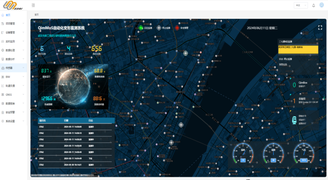 多年來,武漢市政院始終堅守 “創(chuàng)新驅(qū)動、技術(shù)為本” 的發(fā)展理念,積極構(gòu)建 “產(chǎn)學(xué)研用” 協(xié)同創(chuàng)新體系,與多家高校、行業(yè)龍頭企業(yè)聯(lián)合開展技術(shù)攻關(guān),重點深耕深基坑工程全生命周期自動化監(jiān)測技術(shù)領(lǐng)域。目前,公司自主研發(fā)的深基坑工程智能監(jiān)測系統(tǒng),已成功集成北斗GNSS定位、測量機器人、陣列位移計、AI視頻巡查等多源傳感器設(shè)備,在各類深基坑工程監(jiān)測中實現(xiàn)規(guī)?;瘧?yīng)用,技術(shù)水平處于行業(yè)領(lǐng)先地位。