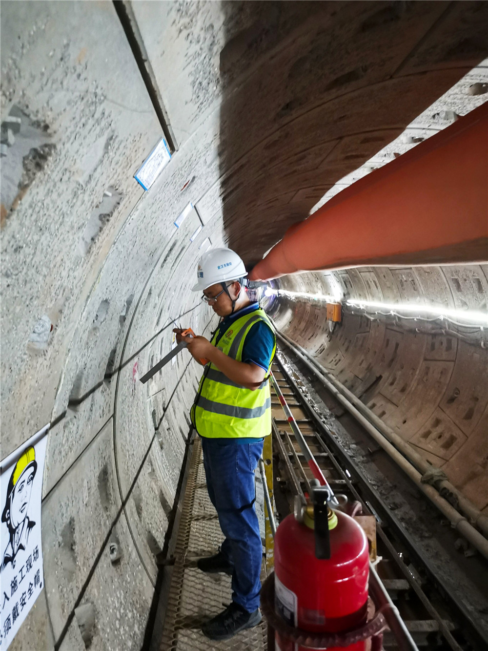 地處青山區(qū)的大東湖污水傳輸系統(tǒng)是“四水共治”和“長江大保護”的關(guān)鍵工程,是國內(nèi)首條建設(shè)的最長深層污水傳輸隧道,全長17.6公里。污水傳輸工程的勘察、論證、設(shè)計和監(jiān)理工作均由公司承擔(dān),項目規(guī)模大、難度高。為保證項目進度,員工們在炎熱的環(huán)境中依然一絲不茍地工作。蔡輝一行乘坐工程梯下到污水處理隧道工作井下,與項目監(jiān)理負(fù)責(zé)人交流項目建設(shè)中存在的問題和困難,叮囑他們注意防暑降溫,保質(zhì)保量完成項目建設(shè)任務(wù)。