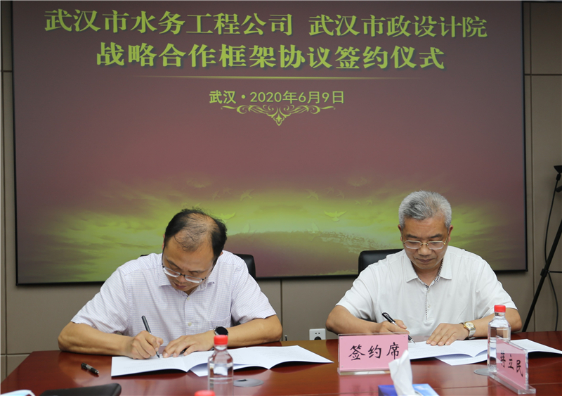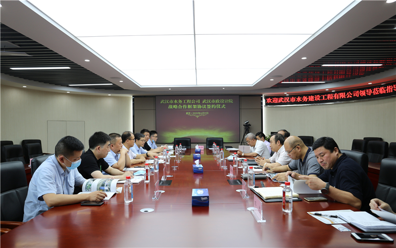 2020年6月9日下午,公司與武漢市水務(wù)建設(shè)工程有限公司簽訂戰(zhàn)略合作框架協(xié)議,雙方將依托各自優(yōu)勢資源,在城市水務(wù)建設(shè)、市政基礎(chǔ)設(shè)施建設(shè)等多領(lǐng)域展開深度合作。武漢市水務(wù)建設(shè)工程有限公司經(jīng)理程飛、黨委書記陳軍、副經(jīng)理宋萍森,公司董事長武興治、總經(jīng)理姚華、副總經(jīng)理周俊等出席了簽約儀式。