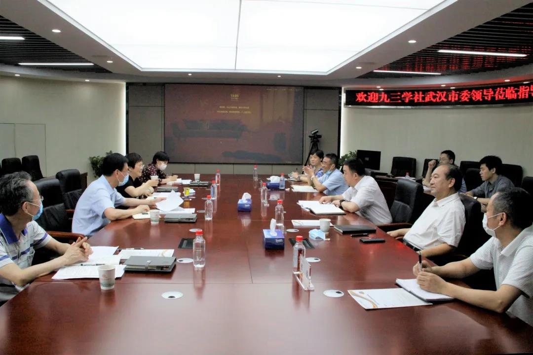 2020年6月19日下午,武漢市政協(xié)副主席、九三學(xué)社武漢市委主委梁鳴,九三學(xué)社武漢市委副主委郭剛艷,九三學(xué)社武漢市委秘書長陳勝利,江漢區(qū)工委主委栗曉紅等蒞臨公司調(diào)研指導(dǎo),公司黨委書記蔡輝、董事長武興治及公司九三學(xué)社社員參加了座談交流。