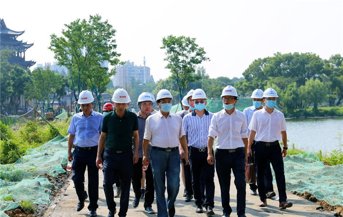 紫陽(yáng)湖“大湖+”工程是武漢市全面推進(jìn)“大湖+”建設(shè)的第一個(gè)樣板湖區(qū)工程,也是武昌區(qū)實(shí)現(xiàn)“大湖+”主題功能區(qū)的重點(diǎn)示范項(xiàng)目。武興治一行詳細(xì)檢查了項(xiàng)目現(xiàn)場(chǎng)管理情況,認(rèn)真聽(tīng)取了項(xiàng)目情況匯報(bào),對(duì)項(xiàng)目建設(shè)提升效果和現(xiàn)場(chǎng)安全文明施工管理情況表示肯定。他指出,當(dāng)前全市正經(jīng)受著防疫、防汛、防高溫的多重考驗(yàn),既要保證項(xiàng)目進(jìn)度,更要保證建設(shè)安全。武興治要求現(xiàn)場(chǎng)管理人員要牢固樹(shù)立安全生產(chǎn)意識(shí),不懈怠、不松勁,嚴(yán)格落實(shí)安全生產(chǎn)文明施工及防暑降溫各項(xiàng)措施,合理安排作業(yè)時(shí)間,確保項(xiàng)目安全順利完工。