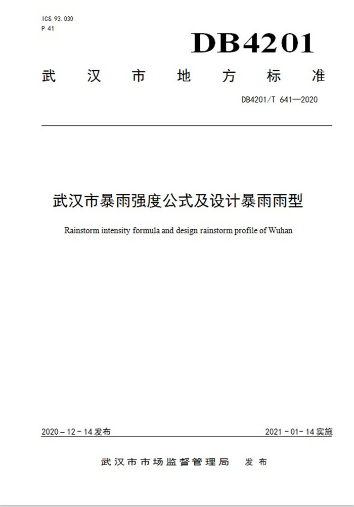 為科學反映暴雨特征,規(guī)范排水防澇設施規(guī)模量化計算公式,進一步提高防汛減災能力,由我公司主編修訂的《武漢市暴雨強度公式及設計暴雨雨型》標準,于12月14日正式發(fā)布。
