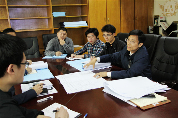 石亞軍同志(右一)與同事們交流討論