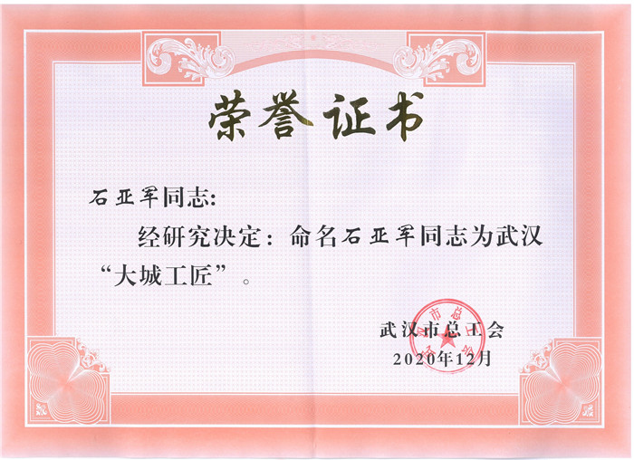 石亞軍同志先后榮獲“住房城鄉(xiāng)建設(shè)系統(tǒng)勞動(dòng)模范”“湖北省勞動(dòng)模范”“武漢市勞動(dòng)模范”、武漢市“雙創(chuàng)”競(jìng)賽活動(dòng)“創(chuàng)新能手”、武漢市職工職業(yè)道德建設(shè)“雙十佳”先進(jìn)個(gè)人等榮譽(yù)稱號(hào),并于2018年作為“新時(shí)代、新氣象、新作為”武漢市勞動(dòng)模范先進(jìn)事跡報(bào)告團(tuán)成員在武漢市作巡回報(bào)告,這是對(duì)他甘于奉獻(xiàn)、愛(ài)崗敬業(yè)、守正創(chuàng)新精神的褒獎(jiǎng)!