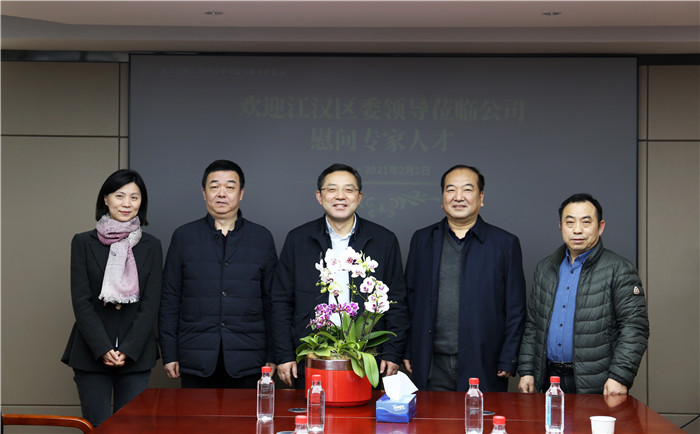 2021年2月2日下午,江漢區(qū)區(qū)委書記張俊勇一行蒞臨公司,對(duì)江漢區(qū)專家人才、公司董事長武興治進(jìn)行了慰問,黨委書記蔡輝、總經(jīng)理姚華及相關(guān)部門工作人員參加了會(huì)議。