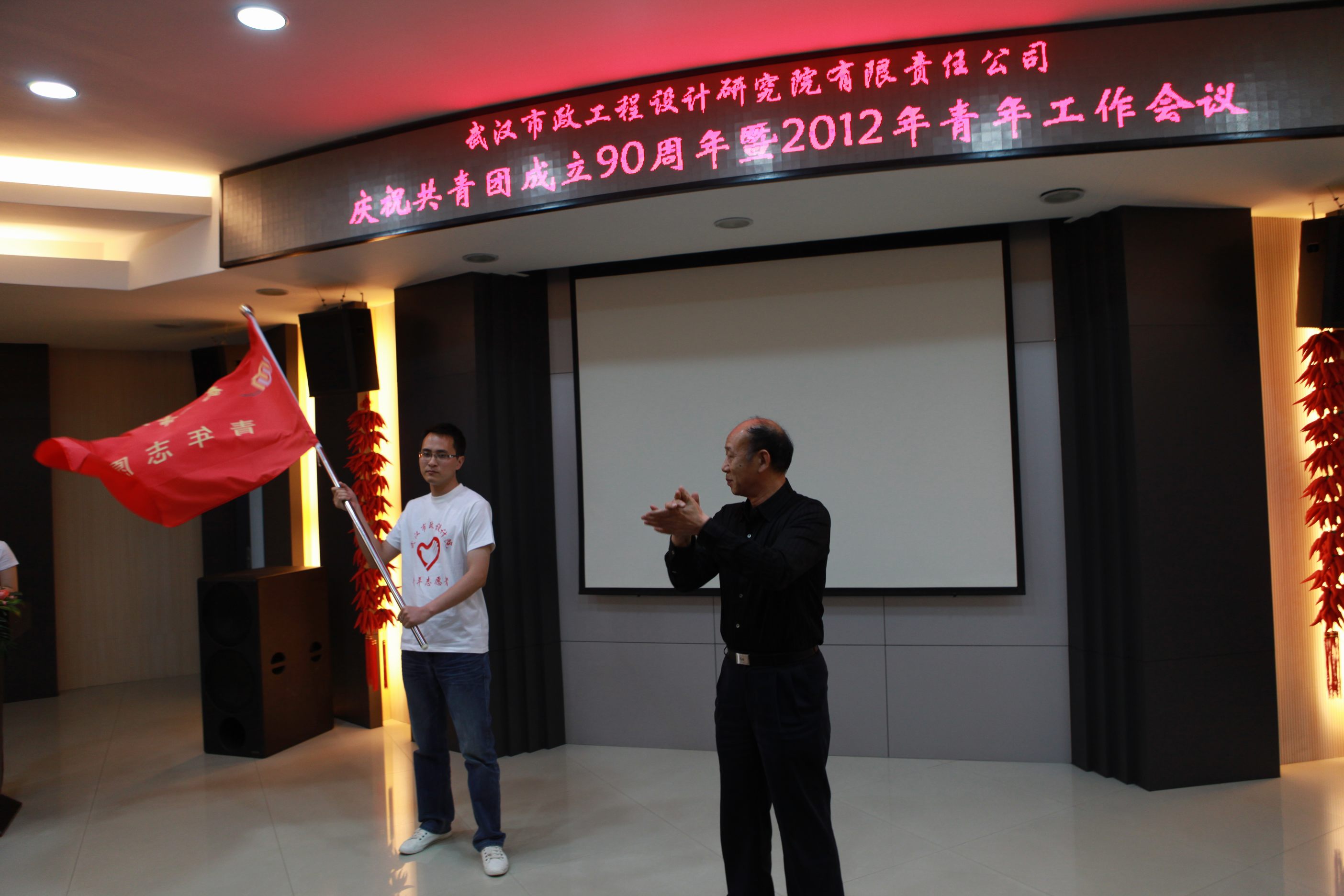 ??? 4月27日下午,公司在二樓會(huì)議室召開(kāi)慶祝中國(guó)共青團(tuán)成立90周年暨2012年青年工作會(huì)議。市城建委黨組副書(shū)記、副主任熊明亮,共青團(tuán)武漢市委副書(shū)記魏靜應(yīng)邀出席,公司領(lǐng)導(dǎo)參加了本次會(huì)議。