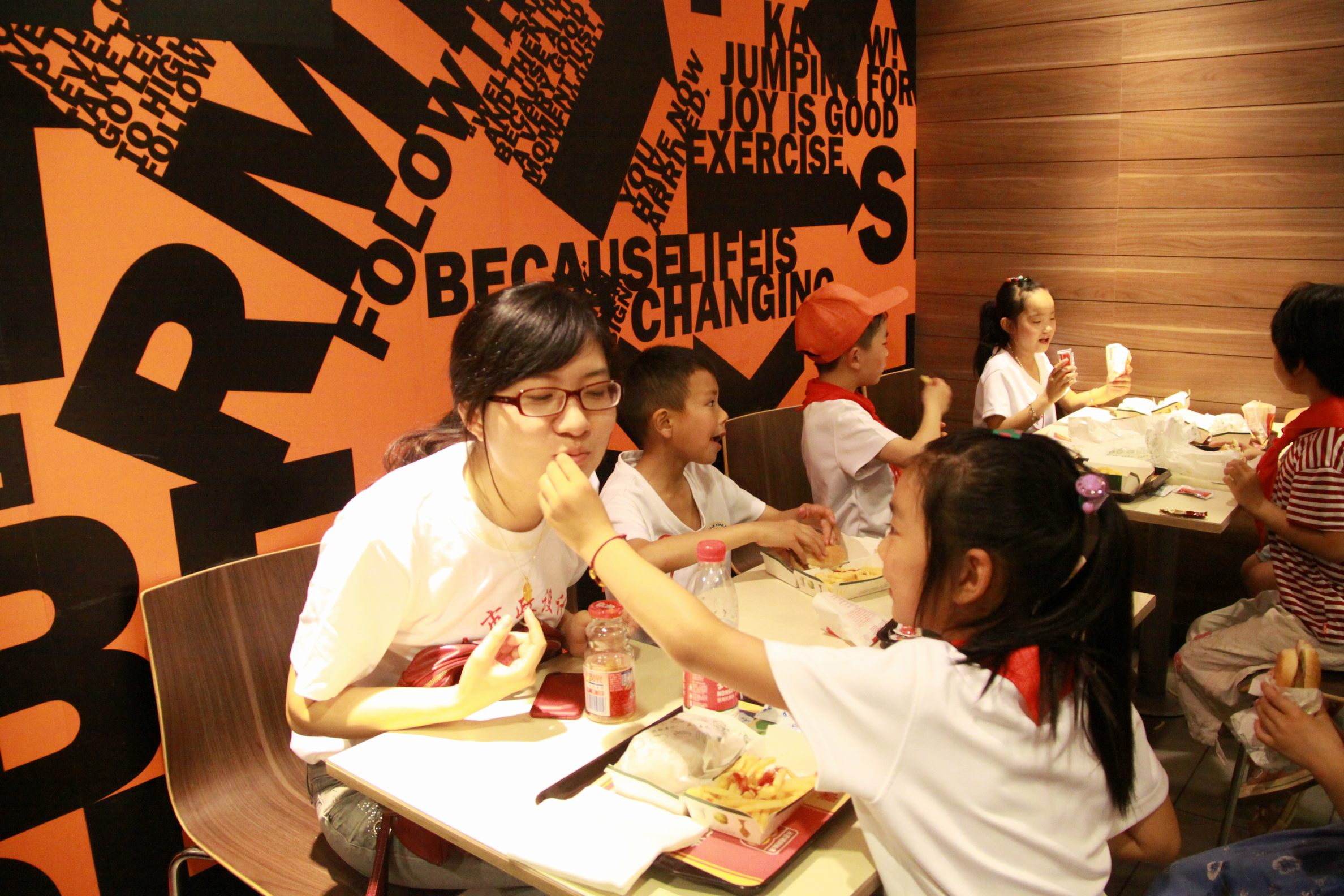 ??? 中午時分,孩子們乘車來到公司,公司黨委書記蔡輝、副總經(jīng)理趙世杰走出辦公樓歡迎師生們的到來,并與他們合影留念。隨后,志愿者與小朋友們一起來到麥當(dāng)勞餐廳共進(jìn)午餐,餐廳游樂區(qū)的玩具引起了孩子們的極大興趣,他們上攀下爬,玩的不亦樂乎。