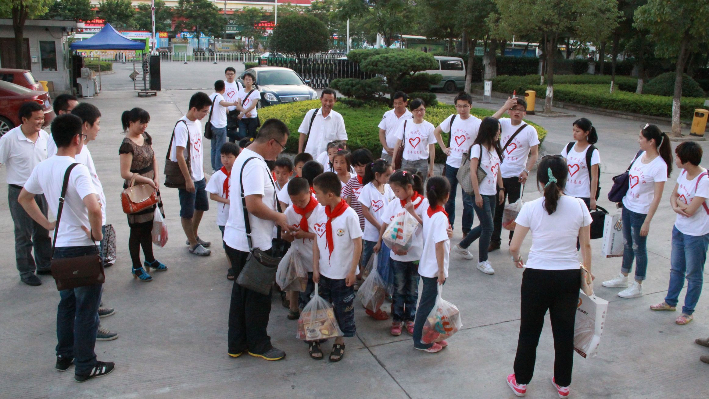 ??? 晚餐結(jié)束后,志愿者們與孩子們手拉手走出公司大門。志愿者隊長向李集小學(xué)領(lǐng)導(dǎo)贈送了文體用品,隊員們也為孩子們送上早已準(zhǔn)備好的食品及小禮物,并送他們上車。告別的瞬間,隊員們向車上的孩子們揮手告別,目送車輛遠(yuǎn)去,車上的孩子們也揮動著自己的小手,向公司志愿者們致意,為這次充實而難忘的活動畫上了圓滿的句號。