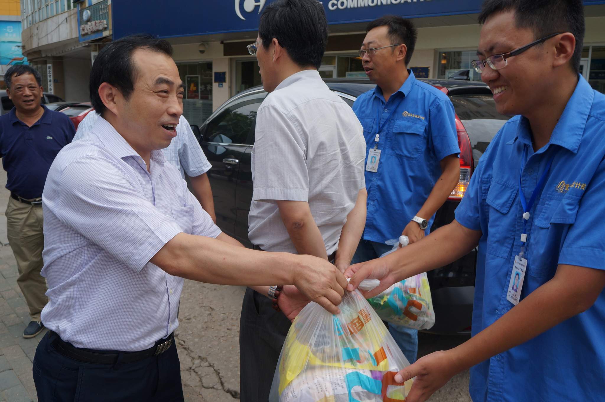 ??? 8月5日,公司總經理姚華、副總經理趙世杰帶領綜合辦公室、監(jiān)理公司、勘測設計院等部門負責人,對部分工地進行了走訪慰問,為高溫下堅持工作的一線員工送上一份清涼。