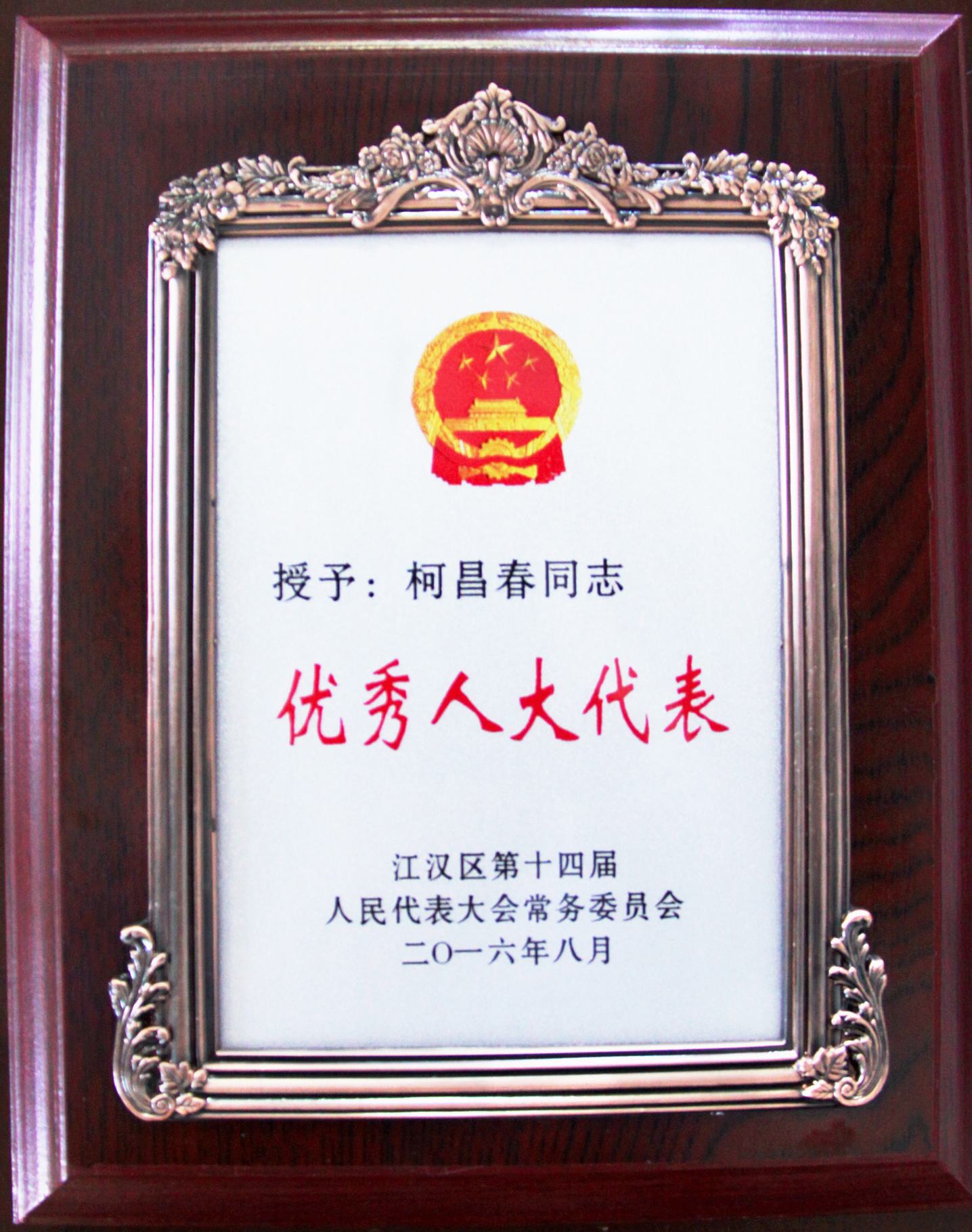 ??? 近日,一則喜報從江漢區(qū)人大傳來,公司董事長柯昌春同志在擔任江漢區(qū)人大代表期間積極為江漢區(qū)的建設(shè)和發(fā)展建言獻策,被江漢區(qū)人大授予“優(yōu)秀人大代表”榮譽稱號。