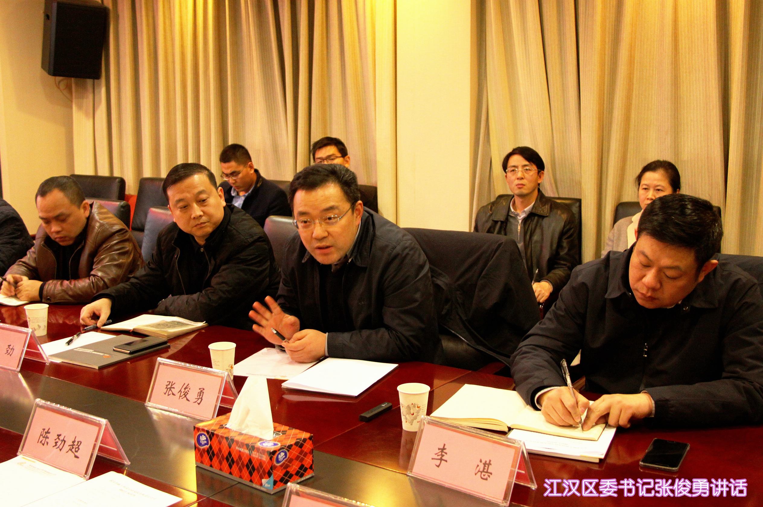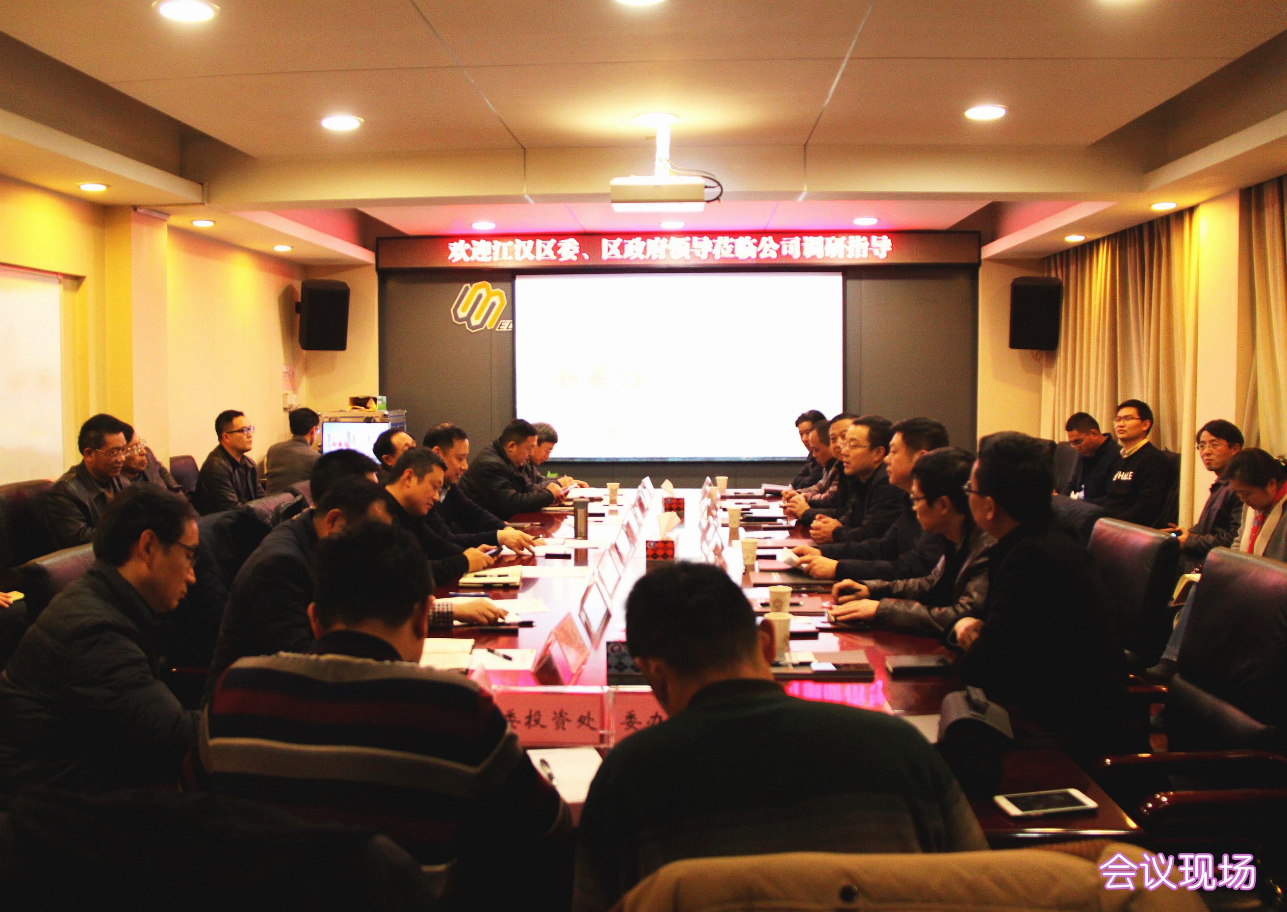 ??? 12月12日,江漢區(qū)區(qū)委書記張俊勇、區(qū)長李湛、常務(wù)副區(qū)長張勁、副區(qū)長葉勁松以及區(qū)建設(shè)局、江漢經(jīng)濟開發(fā)區(qū)、三恒公司等領(lǐng)導蒞臨公司調(diào)研,市城建委主任陳勁超、副主任向暉、首席市政工程專家龍世平、相關(guān)處室領(lǐng)導和公司領(lǐng)導班子成員參加了座談。