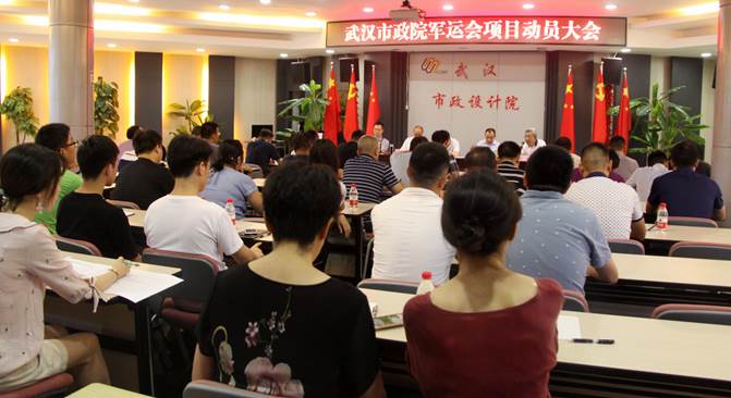 ??? 8月11日上午,武漢市政院在西二樓會(huì)議室召開軍運(yùn)會(huì)項(xiàng)目動(dòng)員推進(jìn)大會(huì),會(huì)議由副總經(jīng)理周俊主持,公司主要領(lǐng)導(dǎo)、總經(jīng)理助理、相關(guān)部門負(fù)責(zé)人、技術(shù)管理人員和軍運(yùn)會(huì)項(xiàng)目負(fù)責(zé)人、專業(yè)負(fù)責(zé)人共60余人參加了會(huì)議。